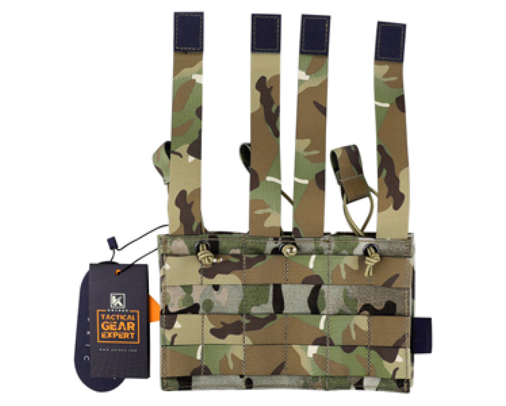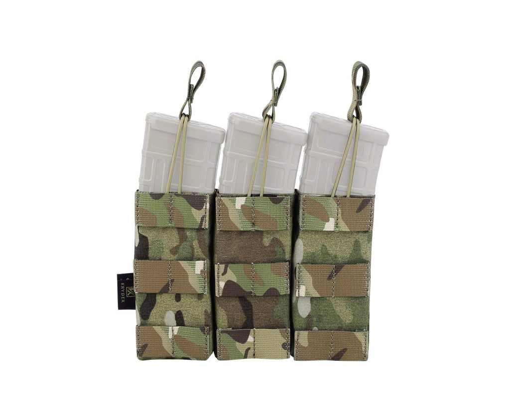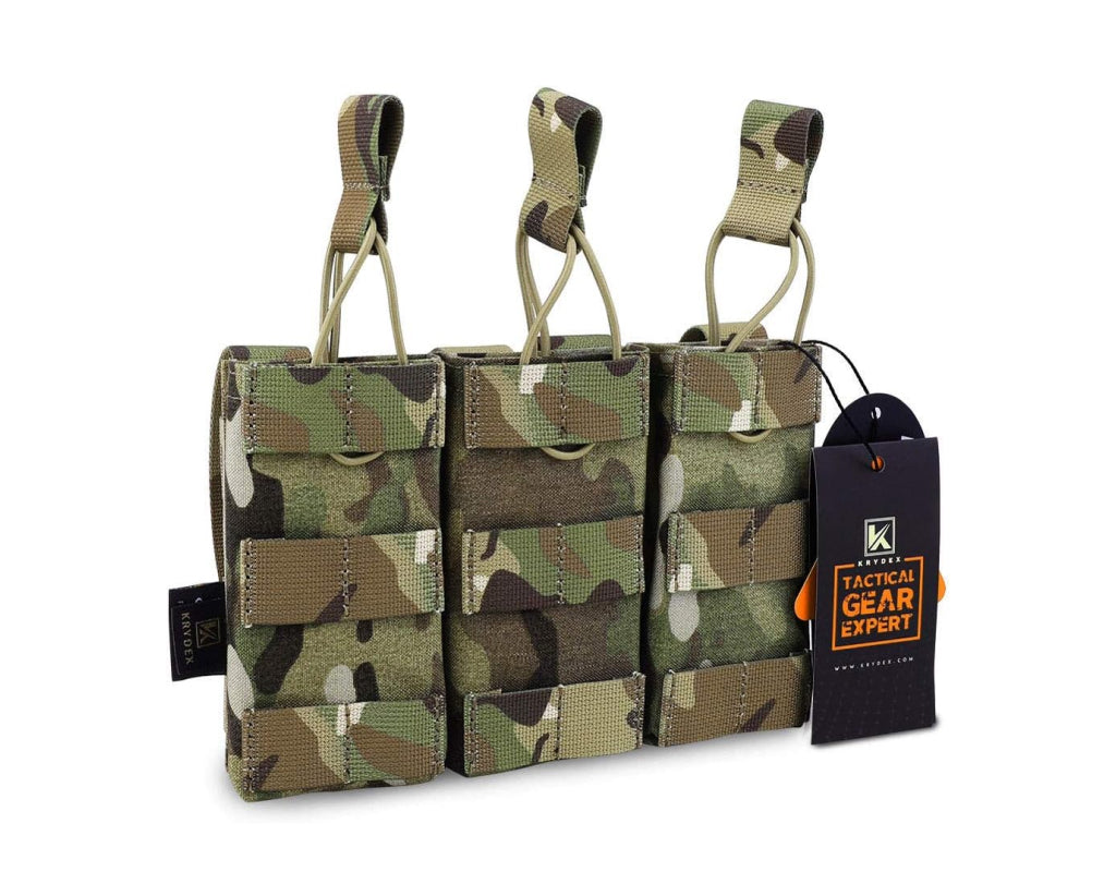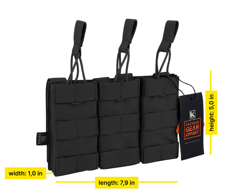 The Triple Mag Pouch with MOLLE Strap offers a modular, open-top design for rapid magazine access. Its elastic cord and adjustable pull tab ensure a snug fit, while the MOLLE webbing makes it easy to attach to your tactical gear. Made from wear-resistant 500D nylon, this pouch is built for durability in any condition.
